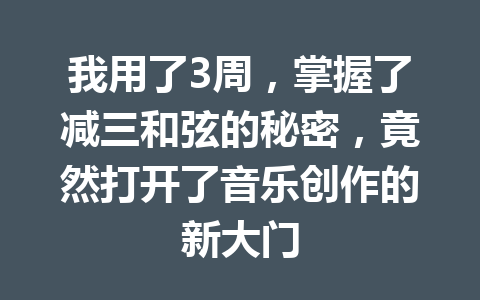 在这段音乐旅程中,我经历了令人振奋的变化——我花了整整3周的时间,深入学习减三和弦,并最终掌握了这个看似复杂却极具美感的和弦类型。今天,我想跟你们分享这一过程中的心得与体会,还有如何通过减三和弦打开音乐创作的新大门。