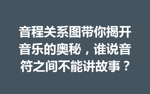 音程关系图不仅仅是一个工具,它是音乐创作的灵感源泉,更是理解音乐表情的钥匙。通过它,我们能够发现音符之间深藏的故事,让音乐的世界更加广阔和迷人。无论你是音乐初学者还是经验丰富的作曲家,掌握音程关系图的技巧都能让你在音乐的旅程中,愉悦地探索更多的可能性。谁说音符之间不能讲故事?让我们一起用音程来书写属于自己的音乐传奇吧!