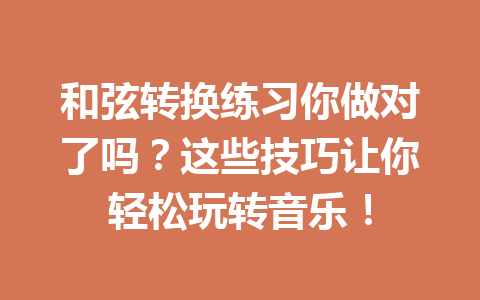 和弦转换练习是每位音乐爱好者不可或缺的一部分,它直接影响着演奏的流畅性和音乐的表现力。通过上述技巧的训练和实践,相信你能轻松玩转音乐,无论是弹唱还是独奏,都能游刃有余。开始你的和弦转换练习吧,音乐的世界在等着你去探索!