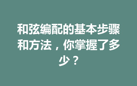 音乐是情感的语言,而和弦则是构建这门语言的重要基石。在你学习或创作音乐的过程中,掌握和弦编配的基本步骤和方法,能够帮助你更好地传达情感与氛围。本文将详细介绍和弦编配的基本步骤和方法,让我们一起来探索这个迷人的音乐世界!