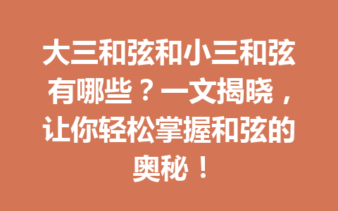 无论你是音乐初学者还是有一定基础的演奏者,掌握大三和弦和小三和弦都是提高音乐素养的重要步骤。它们不仅构成了大部分音乐作品的基础,更为我们的情感表达提供了无限的可能性。希望通过这篇文章,你能更深入地理解大三和弦和小三和弦,并在实践中找到运用它们的乐趣!