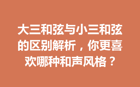 和弦是音乐中不可或缺的元素,它们通过音符的叠加影响着歌曲的情感和氛围。在众多和弦形式中,大三和弦和小三和弦是最为基础且常用的两种,了解它们的区别可以帮助我们更好地理解音乐的和声结构。今天,就让我们一起来探索这两种和声风格,看看哪种更能打动你的心灵。