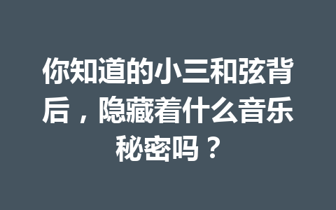 在音乐创作与演奏的世界中,有许多理论与概念值得我们深入探讨。 小三和弦(又称为小和弦)作为一种基础和弦形式,承载着丰富的情感与音乐秘密。今天,让我们一起走进小三和弦的世界,探索它背后隐藏的音乐魅力。