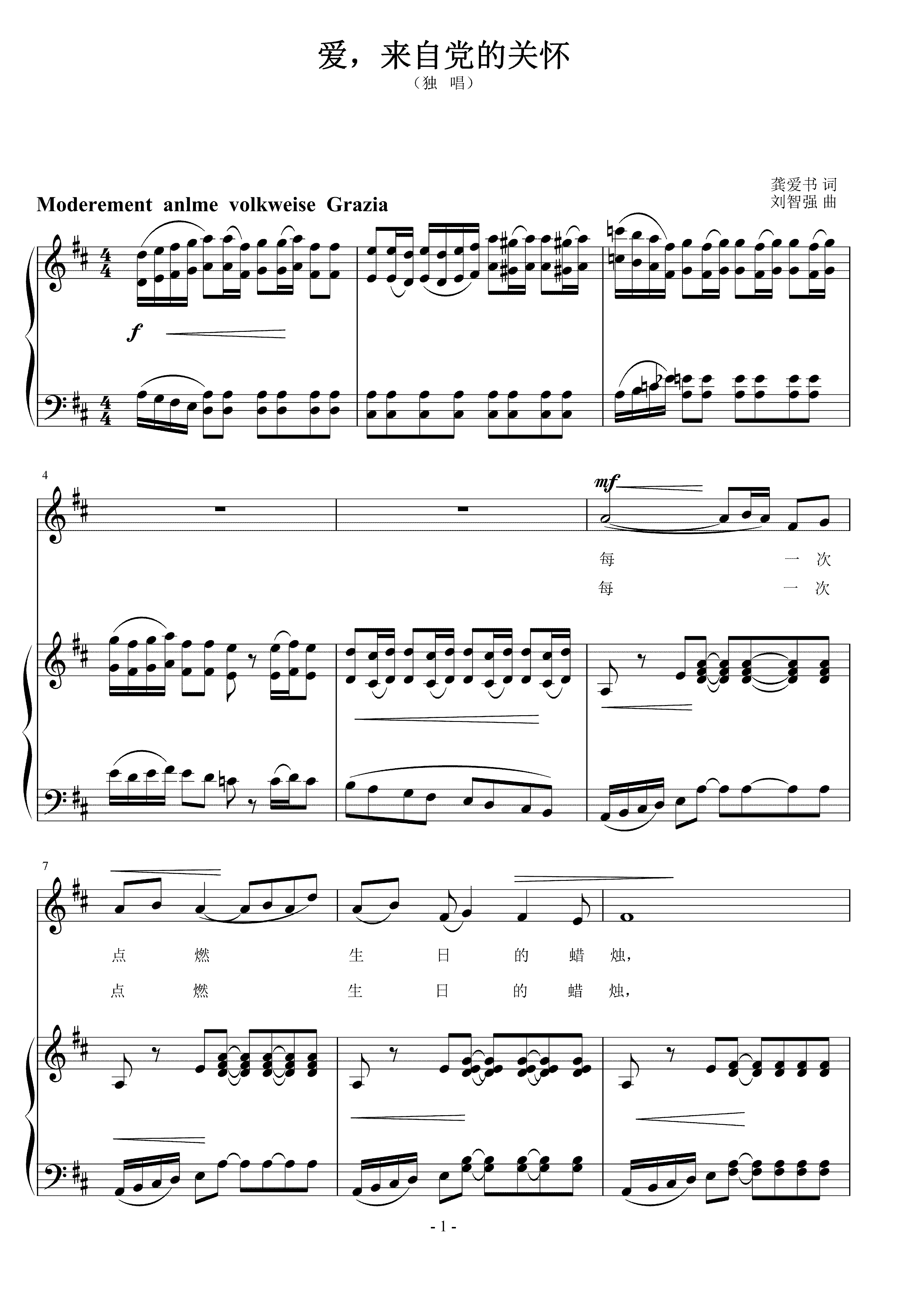 爱,来自党的关怀 刘智强曲 声乐正谱钢琴伴奏谱