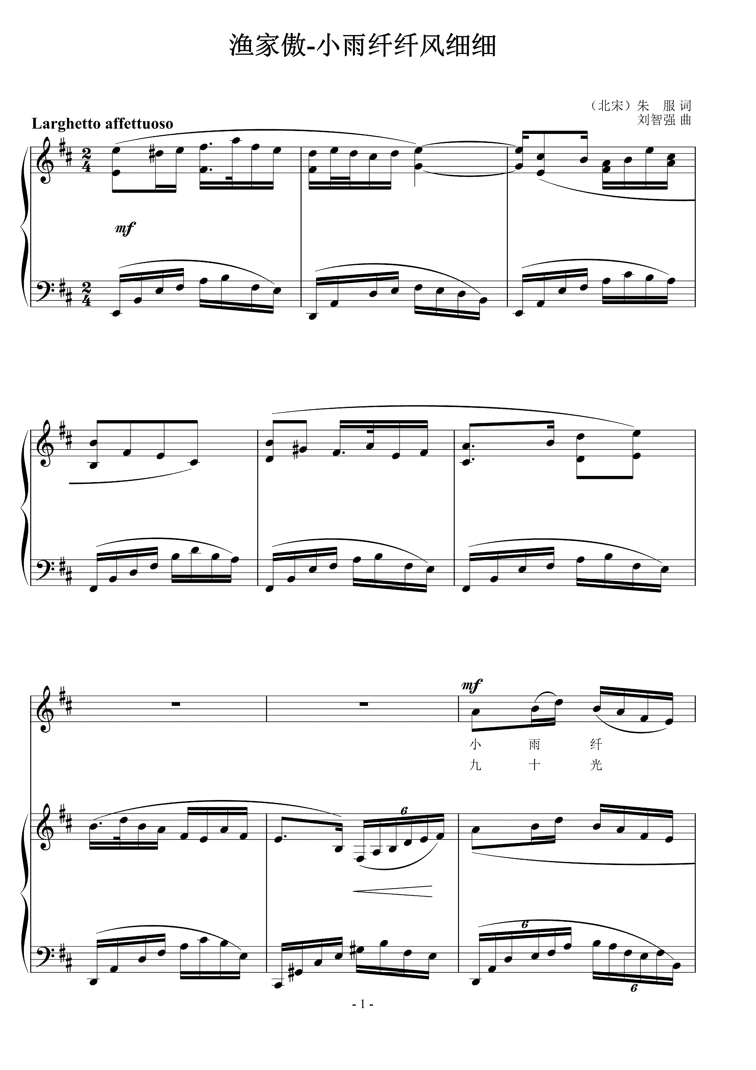 渔家傲-小雨纤纤风细细 刘智强曲 声乐正谱钢琴伴奏谱